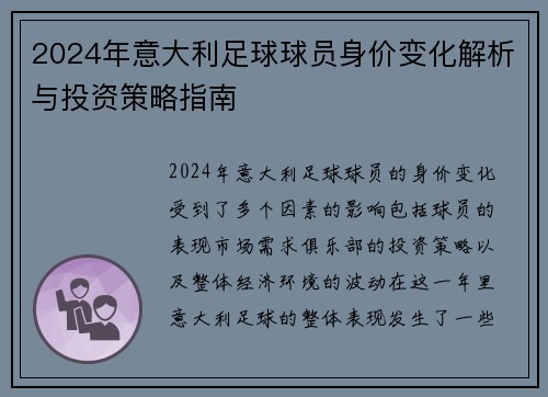2024年意大利足球球员身价变化解析与投资策略指南